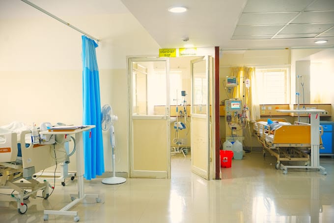 Hospital facilities include patient care, pharmacy, operation theatres, ambulance service, blood banks, diagnostic center, car parking, cafeteria, security, and housekeeping.